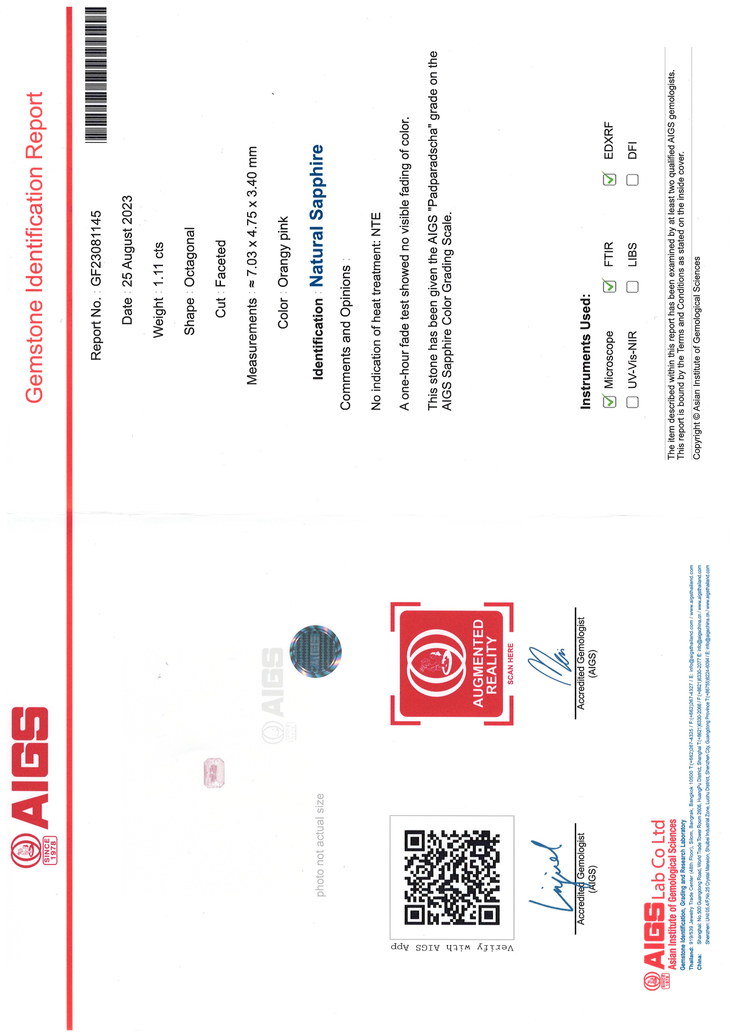 | Center stone id organization | AIGS |